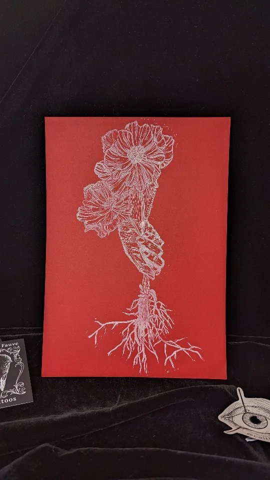 I began my apprenticeship in October 2020 in Jersey, C.I. after completing my Level 3 Diploma in Art and Design at Highlands College. Towards my Diploma I explored surrealism through the Dadaist Movement and the collages of Hannah Hock; and environmental activism- centred installation pieces. Working outside of standard canvases translated beautifully to working on skin, and familiarised me with working in a three dimensional space. These projects also gave me tools to explore narrative in art, which I use now to create flash entrenched with meaning and symbolism. Tattoos by no means must have a meaning, but I find research and intention in my design process create a more cohesive final piece for you.